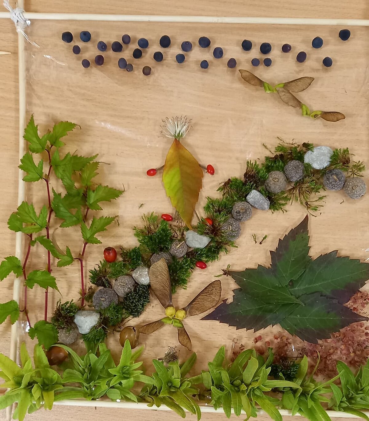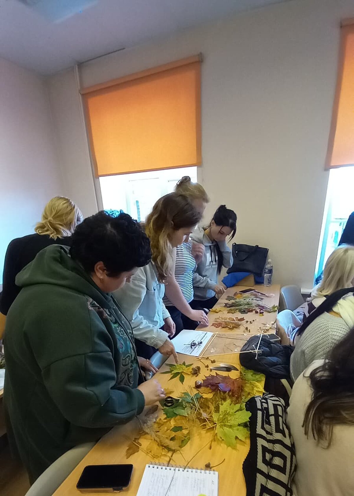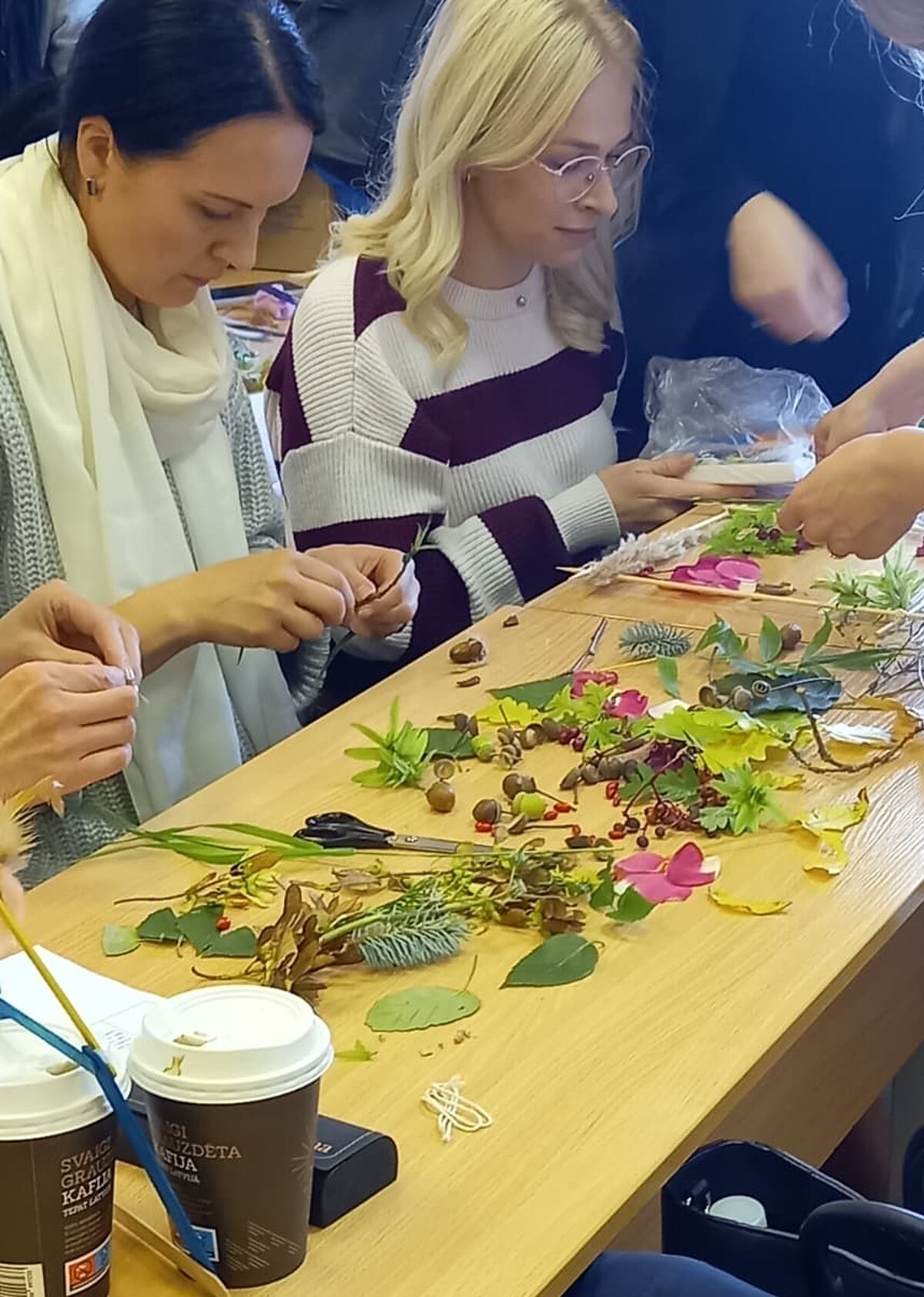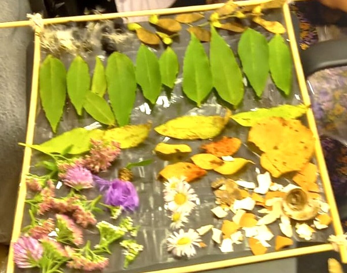 Studentes izmantoja lapas, ziedus, zarus, čiekurus, zīles un citus rudens dārgumus, lai radītu unikālus un vizuāli skaistus darbus.