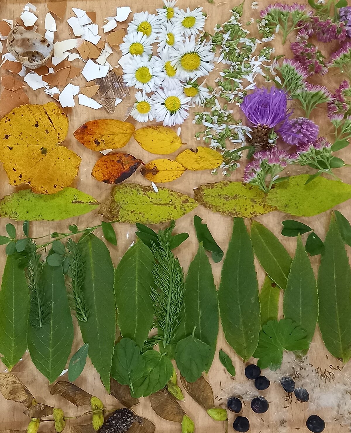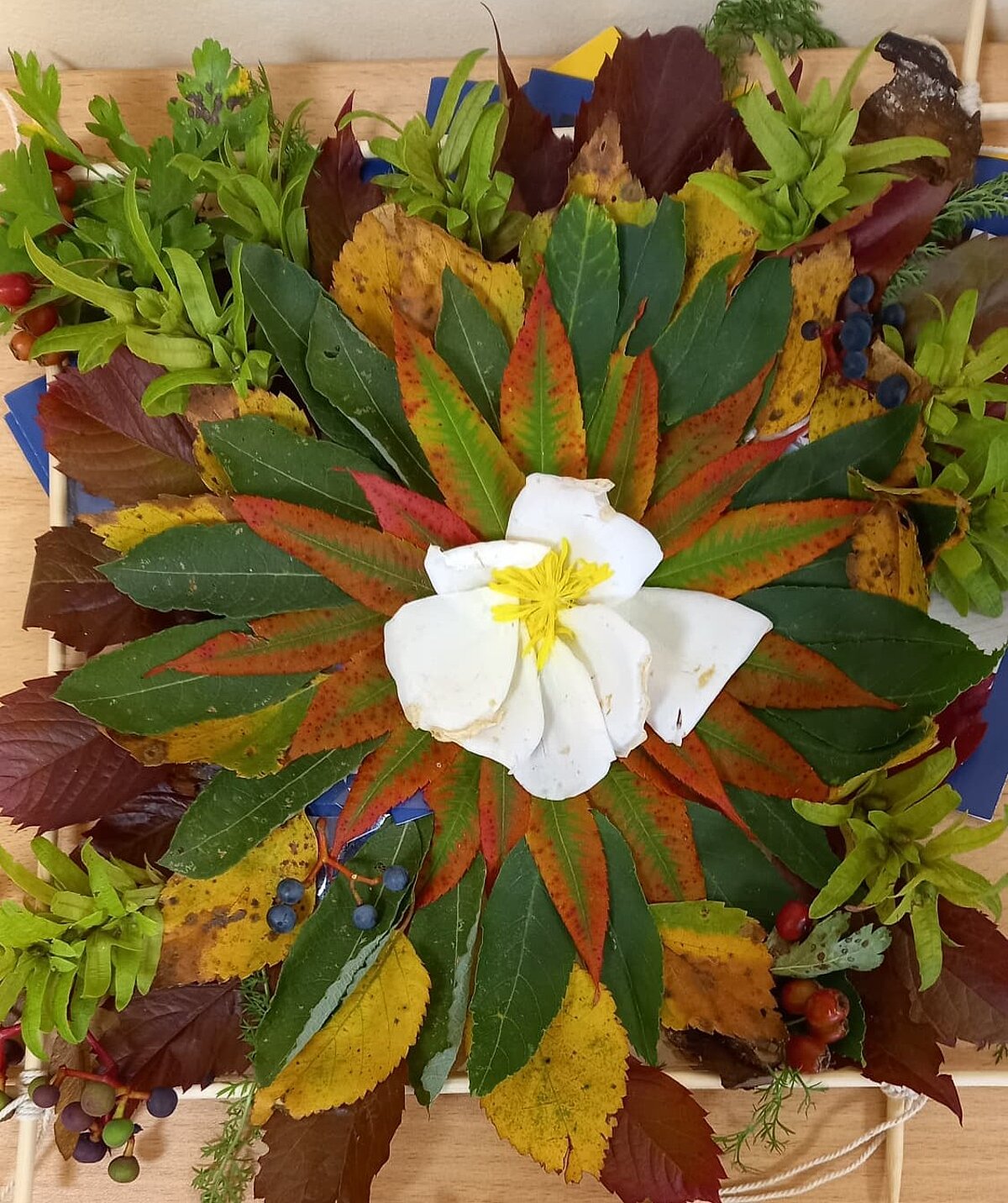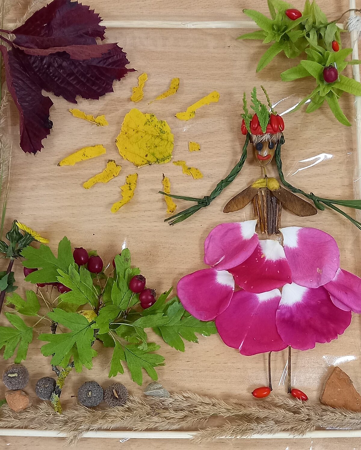 Studentes izmantoja lapas, ziedus, zarus, čiekurus, zīles un citus rudens dārgumus, lai radītu unikālus un vizuāli skaistus darbus.