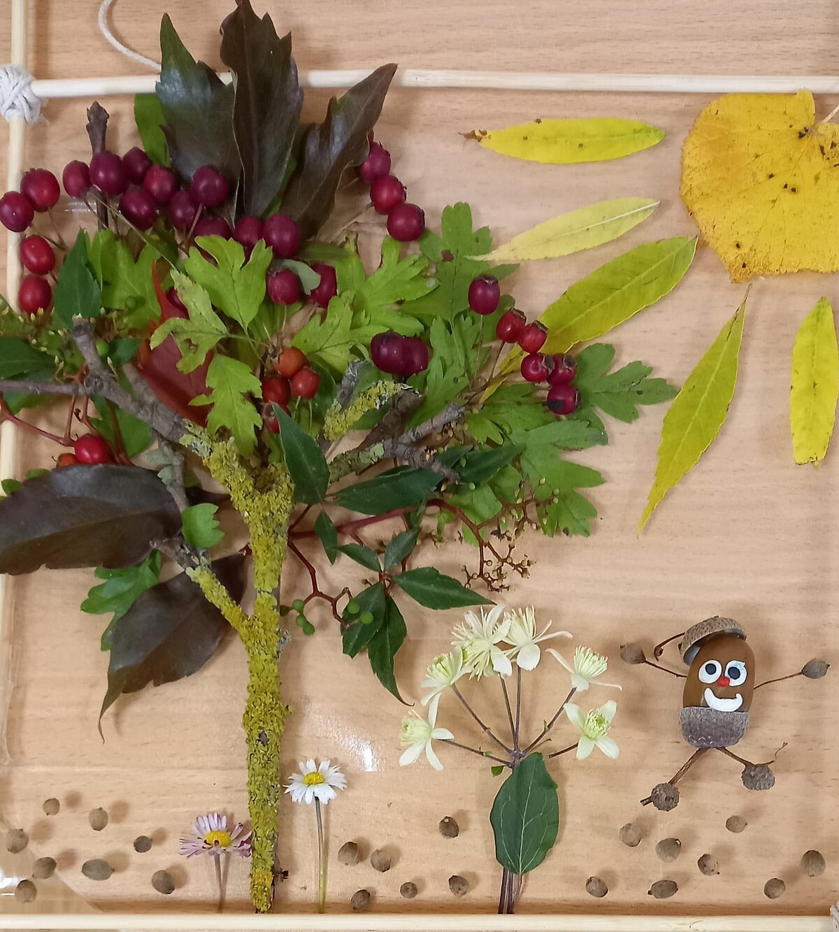 Pirmā semestra studiju programmas "Pirmsskolas skolotājs" studentes studiju kursa “Tehnoloģiju mācību jomas saturs un mācīšanas pieejas” laikā no dabas materiāliem veidoja skaistas rudens gleznas.